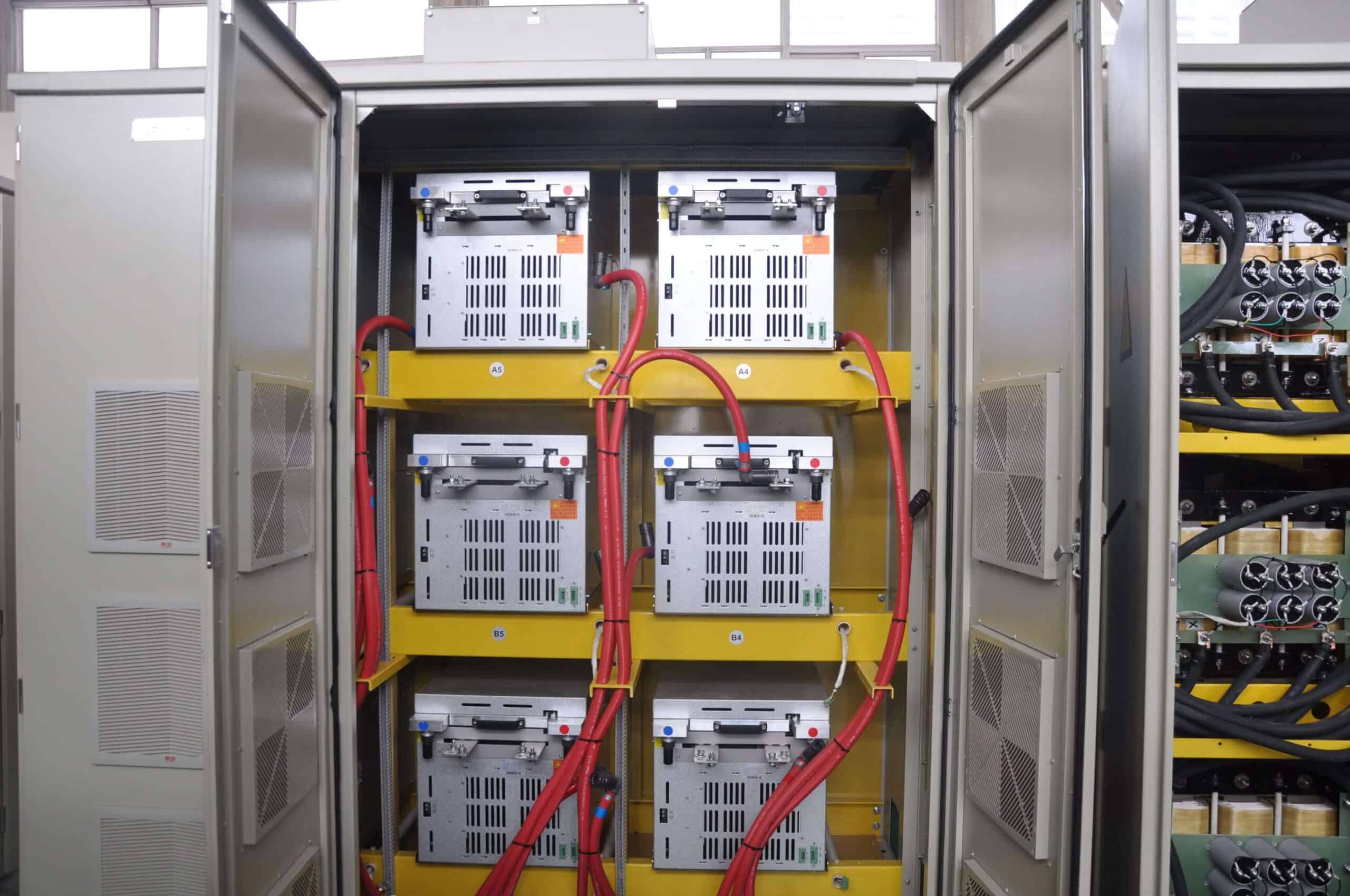 - Інвертор. Складається з електронних перемикачів, таких як транзистори IGBT і тиристори. Він отримує енергію від шини постійного струму і перетворює її в змінний струм необхідної частоти, амплітуди і форми, що подається в двигун. Силова комірка інвертора приймає сигнали через оптичне волокно і використовує технологію широтно-імпульсної модуляції для зміни вихідної частоти і контролю швидкості асинхронного двигуна.