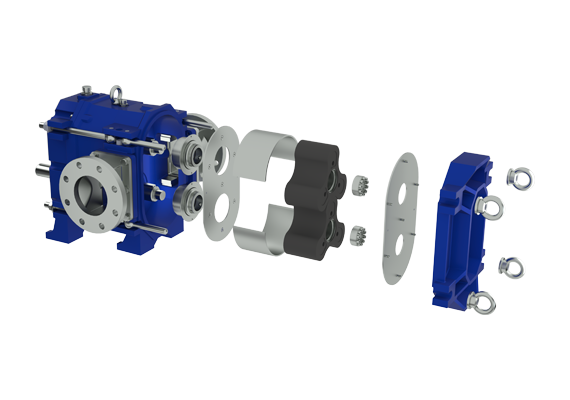 Роторні (кулачкові) насоси відносяться до агрегатів об’ємного типу, в яких витіснення рідкого робочого середовища здійснюється за допомогою синхронного обертання між собою пари кулачкових роторів, які не торкаються одне одного, розміщених в міцному, профільованому корпусі. У процесі обертання роторів перекачувана рідина послідовно заповнює собою простір між ними і корпусом насоса, а потім відкидається в напрямку напірного патрубка. Безперервний і ефективний потік перекачуваного робочого середовища створюється завдяки кліренсу між роторами і корпусом.