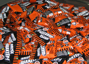 Стандартна пачка “Вперед, “Шахтар!” важить близько 80 грамів, а допустима похибка під час зважування становить не більше 0,4-0,5 г – погодьтеся, точність вражає! Автоматичний пакувальник здатний виготовити 70-90 пачок на хвилину – цілком достатньо для того, щоб під зав’язку заповнити відповідну вітрину звичайного магазину.