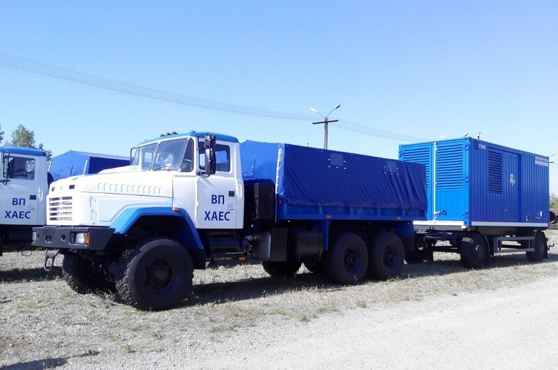 - Cummins C550D5e, змонтовані у 20-футові шумозахищені всепогодні контейнери, на базі причепів МАЗ з тягачами КРАЗ підвищеної прохідності
