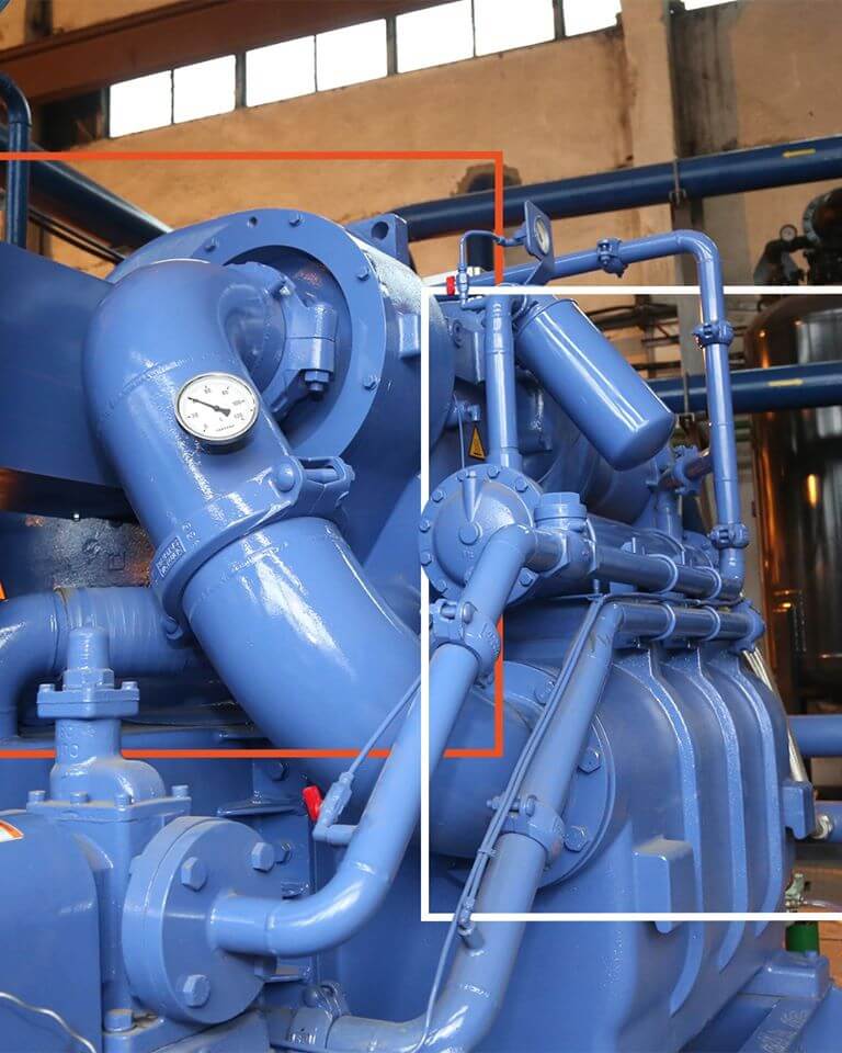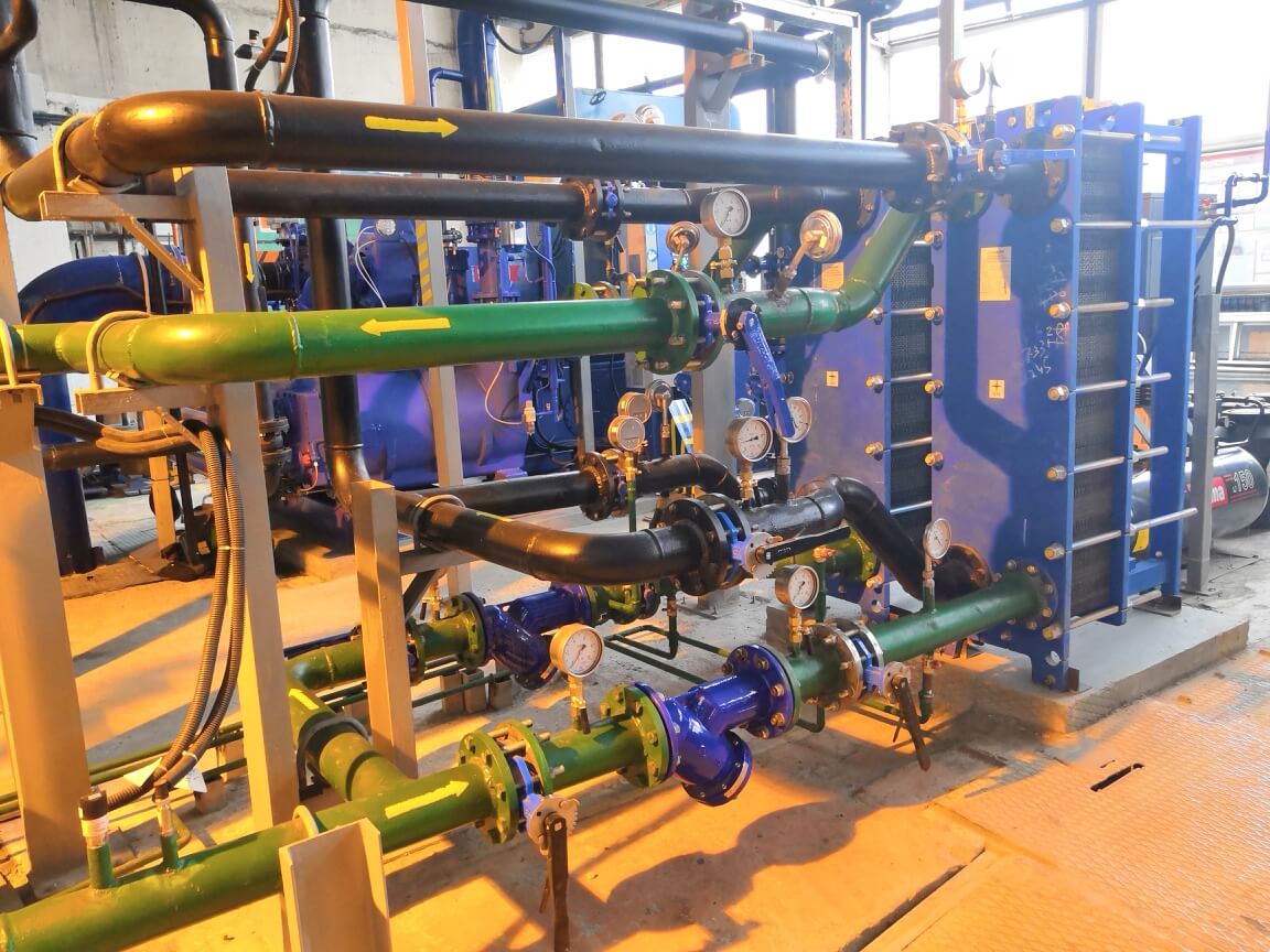 Для підключення центробіжного компресора до вже наявної системи нашими інженерами та фахівцями цеху технологічного водопостачання було підібране місце встановлення, побудовано фундамент. Додатково, для відповідності усім необхідним нормативним вимогам, у цеху підприємства було облаштовано систему припливної вентиляції з підігрівом.