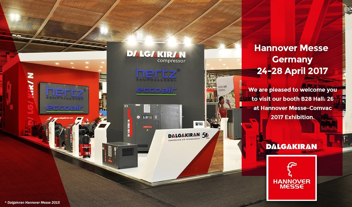 Компанія Dalgakiran Makine запрошує відвідати свій стенд на спеціалізованій виставці ComVac, присвяченій стисненому повітрю і вакуумним технологіям, яка проводиться в рамках найбільшої в світі промислової виставки HANNOVER MESSE 2017. Щороку в цьому масштабному промисловому заході бере участь понад 5 000 експонентів – міжнародних компаній і понад 200 000 відвідувачів.